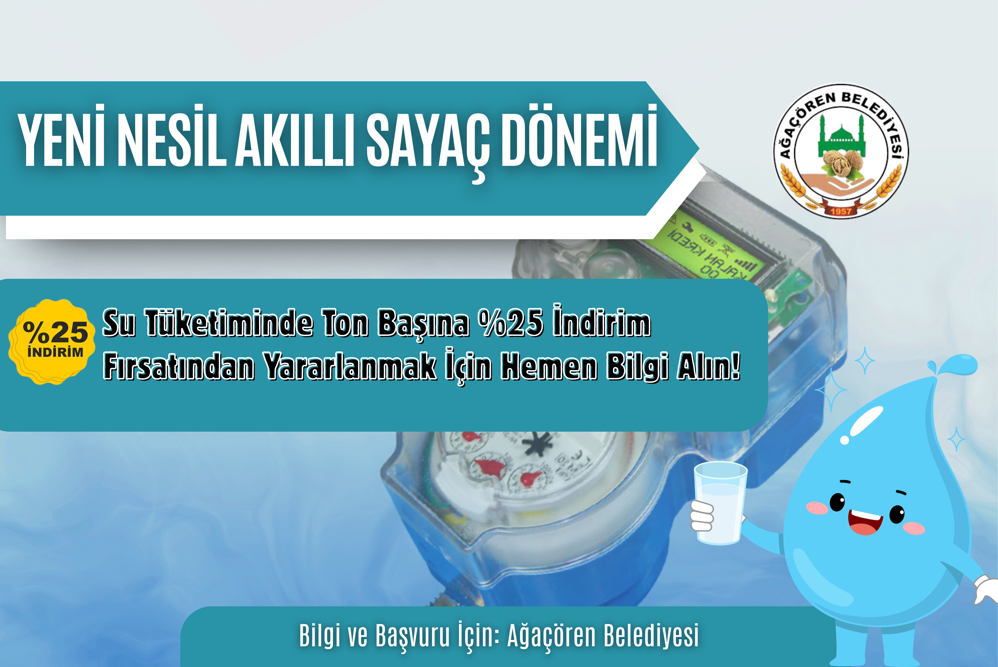 Yeni sisteme geçiş yaparak kartlı sayaç kullanan tüm abonelerimize, su tüketim bedelinin TON BAŞINA %25 İNDİRİMLİ olarak uygulanması kararlaştırılmıştır.